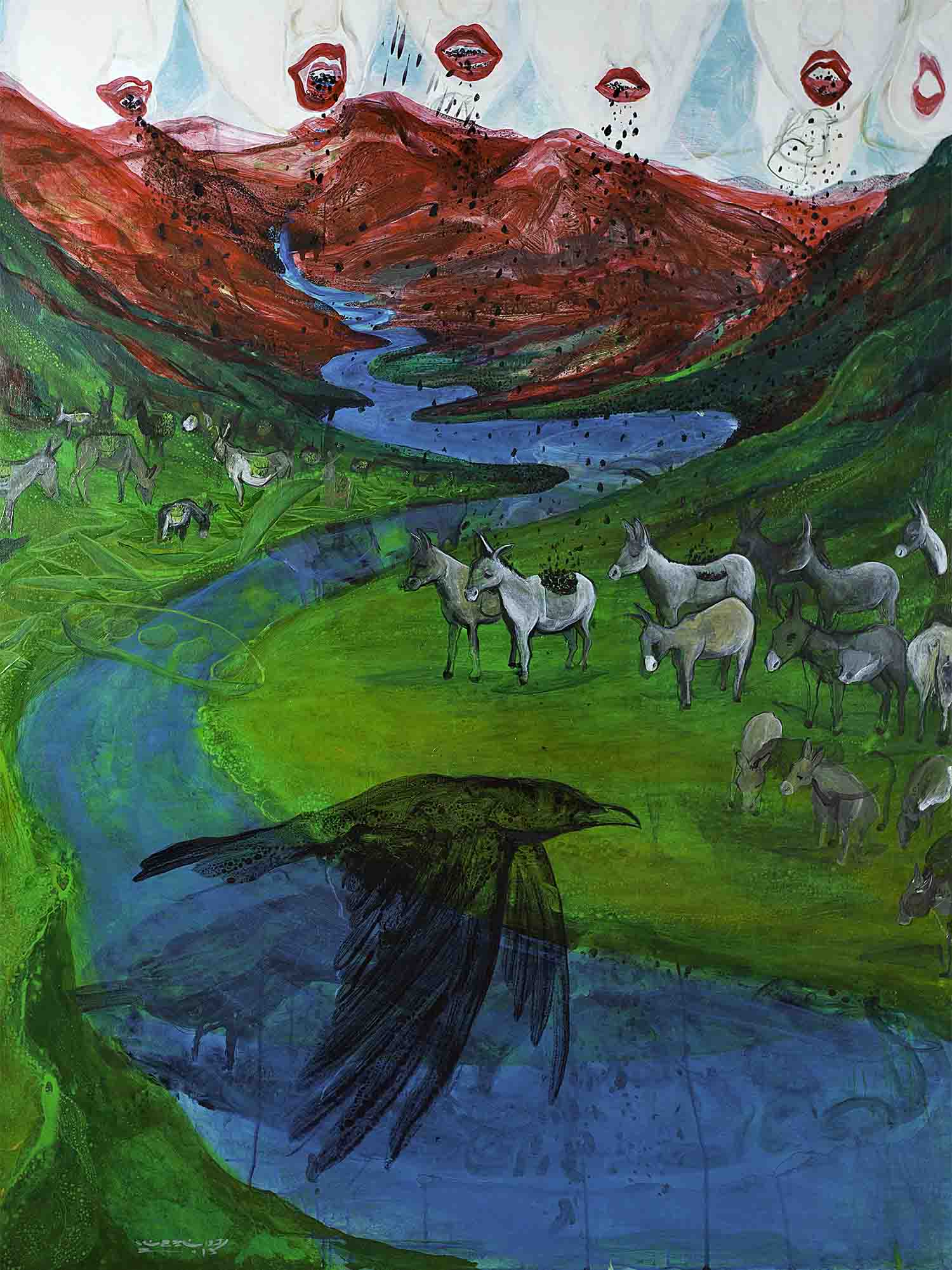 • The comfort of both worlds is explained in these two words: Kindness with friends, tolerance with enemies. ... From chicken milk to the soul of humans (everything imaginable). 2013 Acrylic on Canvas, 200x150 cm