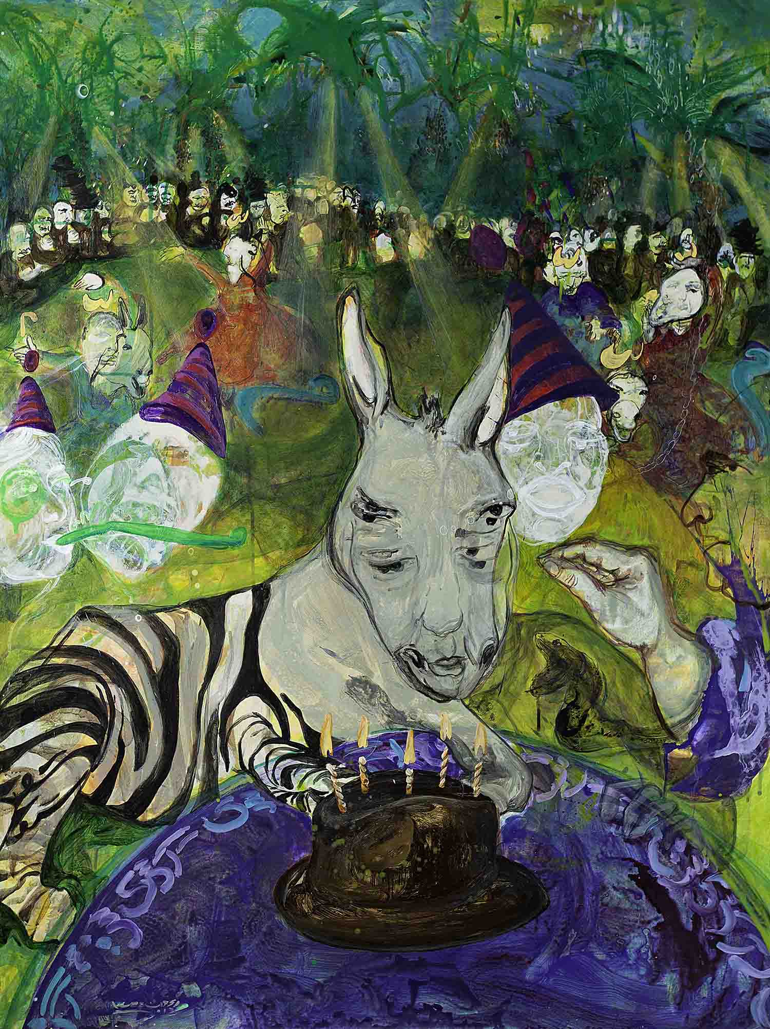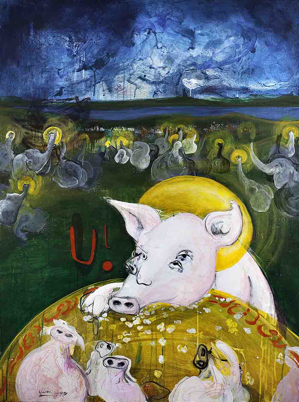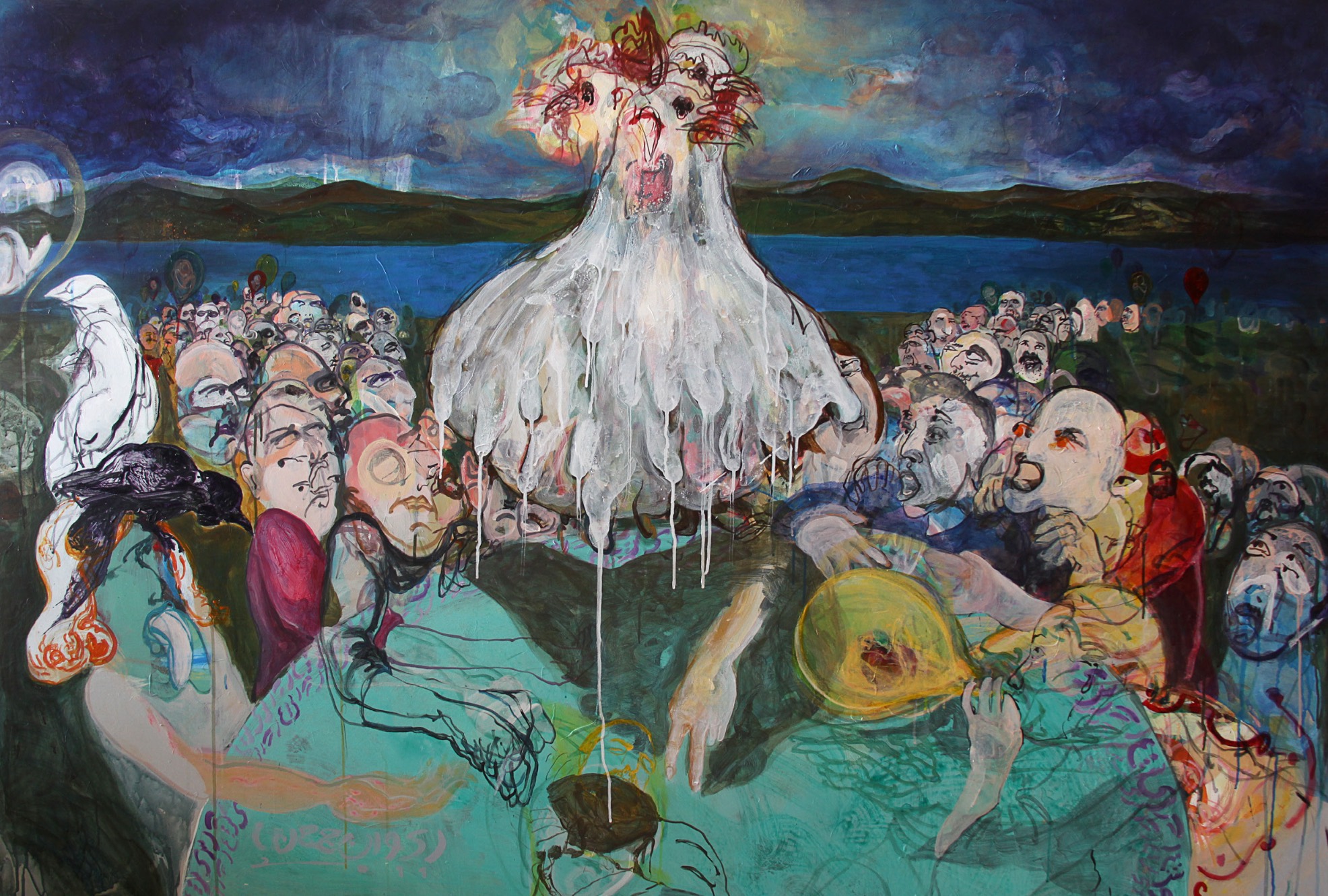 The comfort of both worlds is explained in these two words: Kindness with friends, tolerance with enemies. ... From chicken milk to the soul of humans (everything imaginable). 2013 Acrylic on Cardboard, 200x150 cm